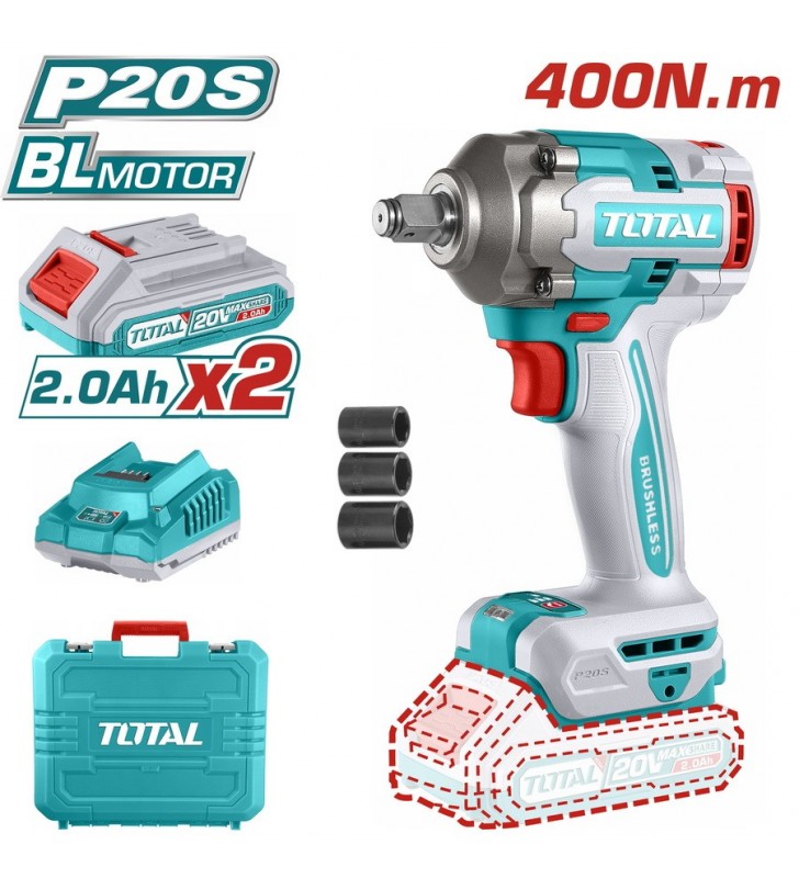 TOTAL ΕΠΑΓΓ. ΜΠΟΥΛΟΝΟΚΛΕΙΔΟ ΜΠΑΤ. Li-ion 20V / 1750Nm / 8Ah / 2 ΜΠΑΤ (TIWLI20175E)