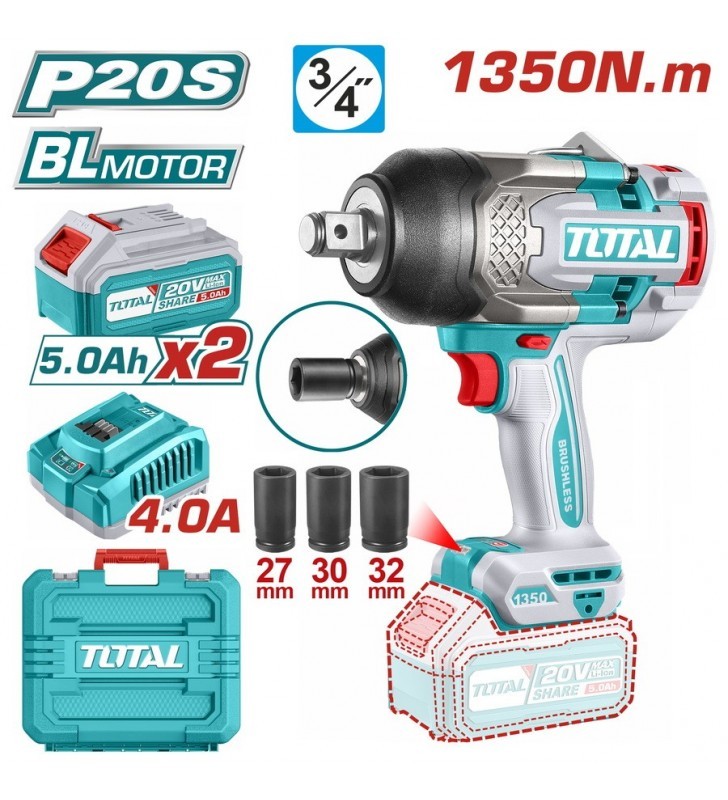 TOTAL ΕΠΑΓΓ. ΜΠΟΥΛΟΝΟΚΛΕΙΔΟ ΜΠΑΤ. Li-ion 42V / 2Ah / 600Nm / 2 ΜΠΑΤ BL Motor (TIWLI42602E)