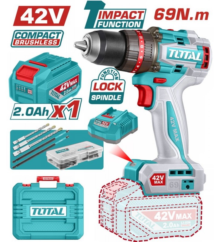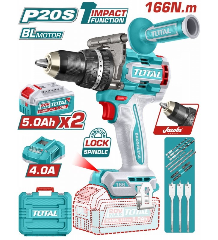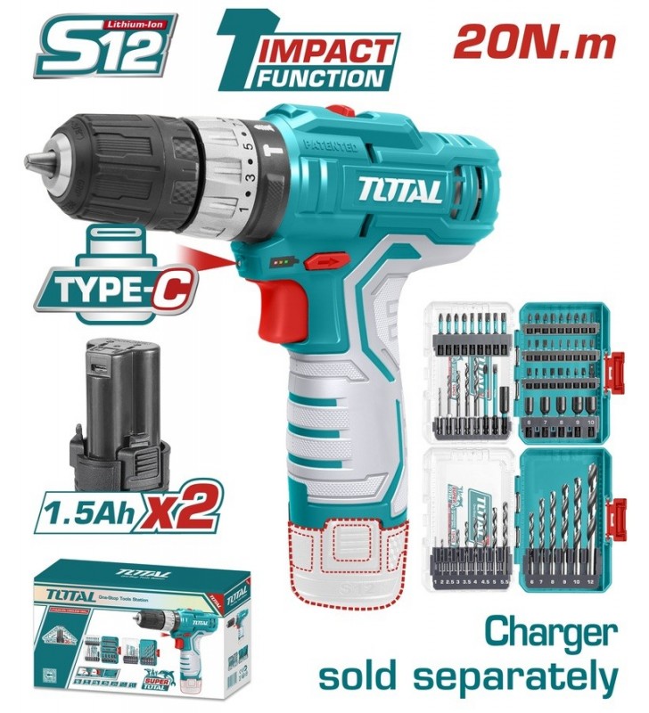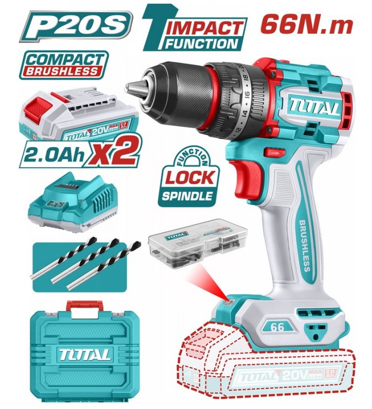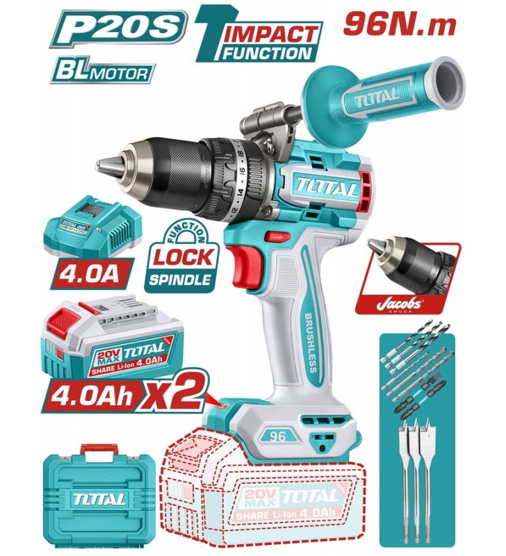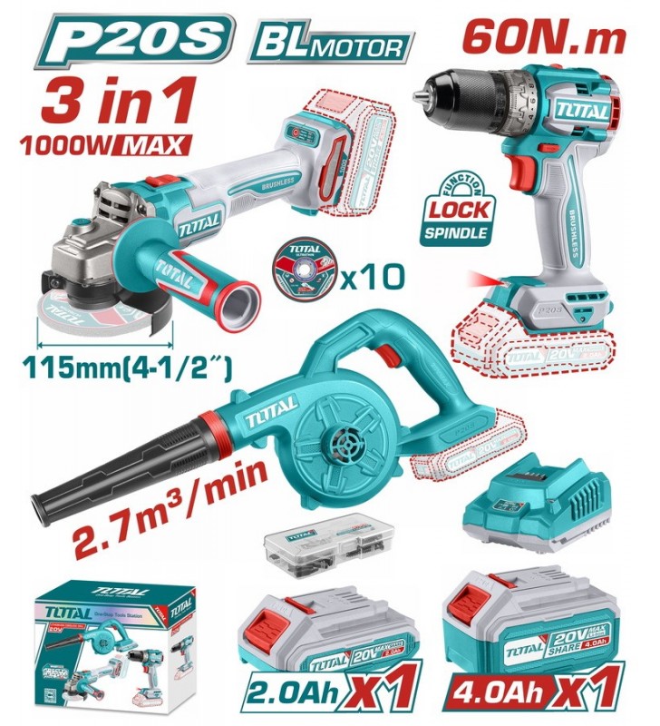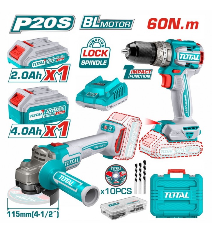 TOTAL ΕΠΑΓΓ. ΣΕΤ ΔΡΑΠ/ΒΙΔΟ ΚΡΟΥΣΤΙΚΟ + ΓΩΝΙΑΚΟΣ ΤΡΟΧΟΣ ΜΠΑΤ. Li-ion 20V / 4Ah + 2Ah (TCKLI20273E)