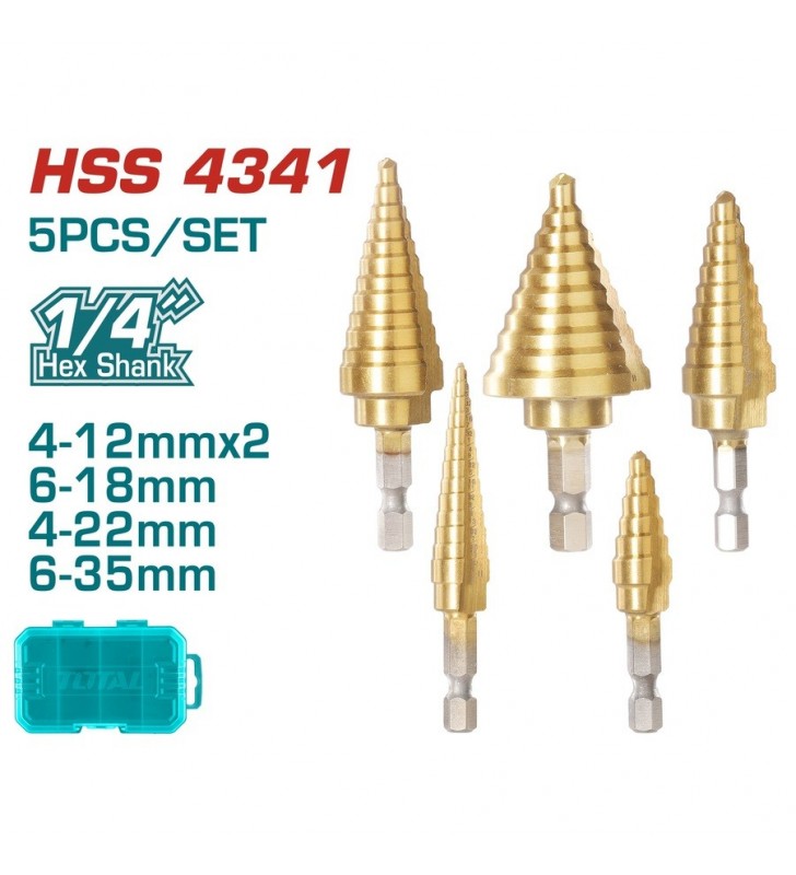 TOTAL ΕΠΑΓΓ. ΣΕΤ ΤΡΥΠΑΝΙΑ ΚΩΝΙΚΑ HSS 1/4" 5ΤΕΜ (TACSD2051)