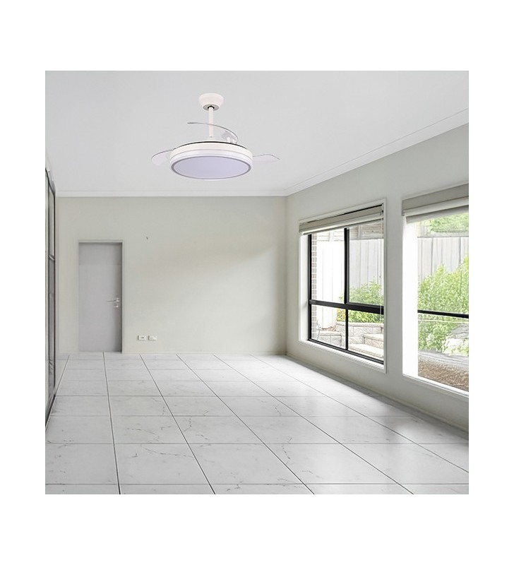 ΑΝΕΜΙΣΤΗΡΑΣ ΟΡΟΦΗΣ ΛΕΥΚΟΣ-ΝΙΚΕΛ ΜΕ ΑΝΟΙΓΟΚΛΕΙΟΜΕΝΕΣ ΦΤΕΡΩΤΕΣ,LED ΦΩΣ ΚΑΙ ΚΟΝΤΡΟΛ Φ107 32W DC MOTEΡ