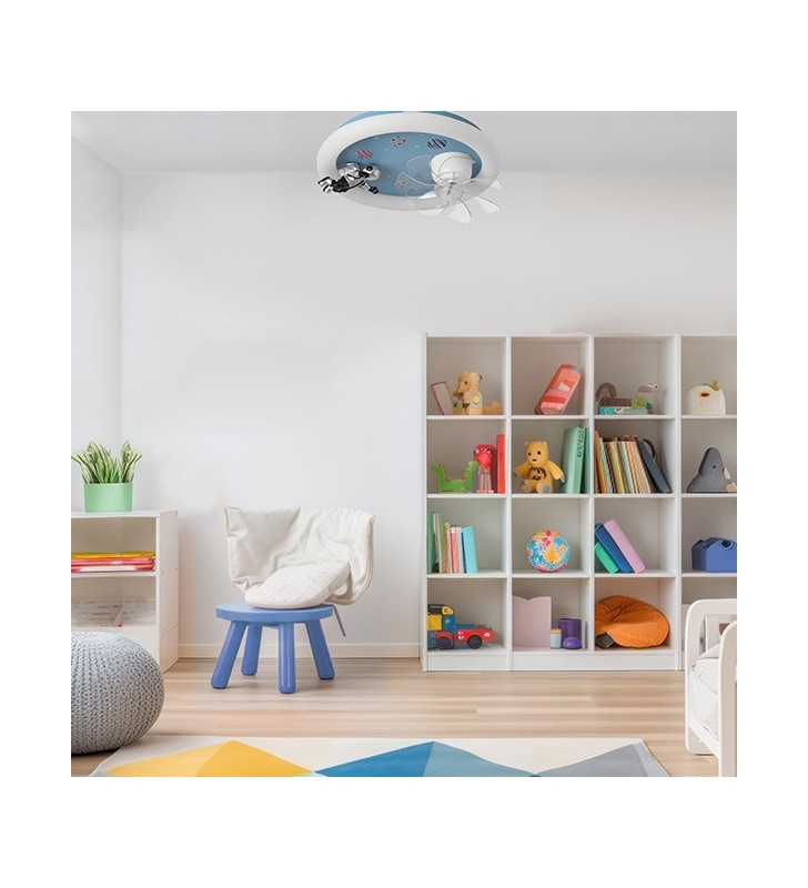 ΑΝΕΜΙΣΤΗΡΑΣ ΟΡΟΦΗΣ ΠΑΙΔΙΚΟΣ ΑΣΤΡΟΝΑΥΤΗΣ ΜΠΛΕ 15W ΜΕ LED ΦΩΣ 48W ΚΑΙ ΚΟΝΤΡΟΛ
