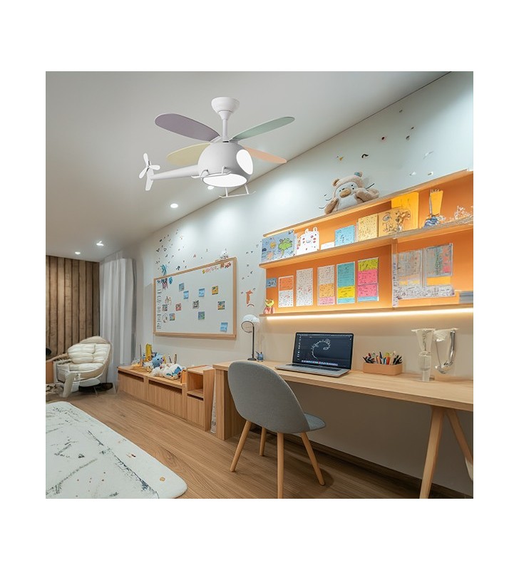 ΑΝΕΜΙΣΤΗΡΑΣ ΟΡΟΦΗΣ ΠΑΙΔΙΚΟΣ ΕΛΙΚΟΠΤΕΡΑΚΙ ΛΕΥΚΟΣ 29W ΜΕ LED ΦΩΣ 48W ΚΑΙ ΚΟΝΤΡΟΛ