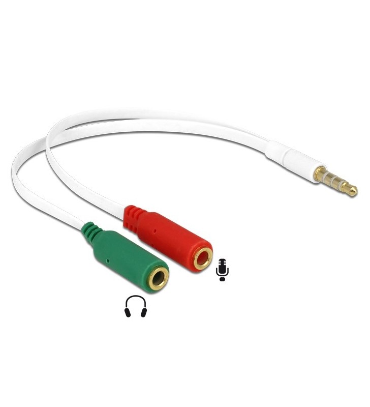 Καλώδιο Αντάπτορας από 2x 3.5mm 3-pin (F) ΘΥΛ. σε 3.5mm 4-pin (M) ΑΡΣ, λευκός - DELOCK (65447)