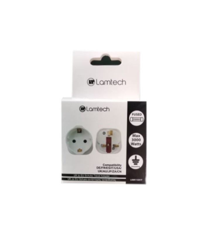 LAMTECH UK 13A TO EU SCHUKO TRAVEL ADAPTER