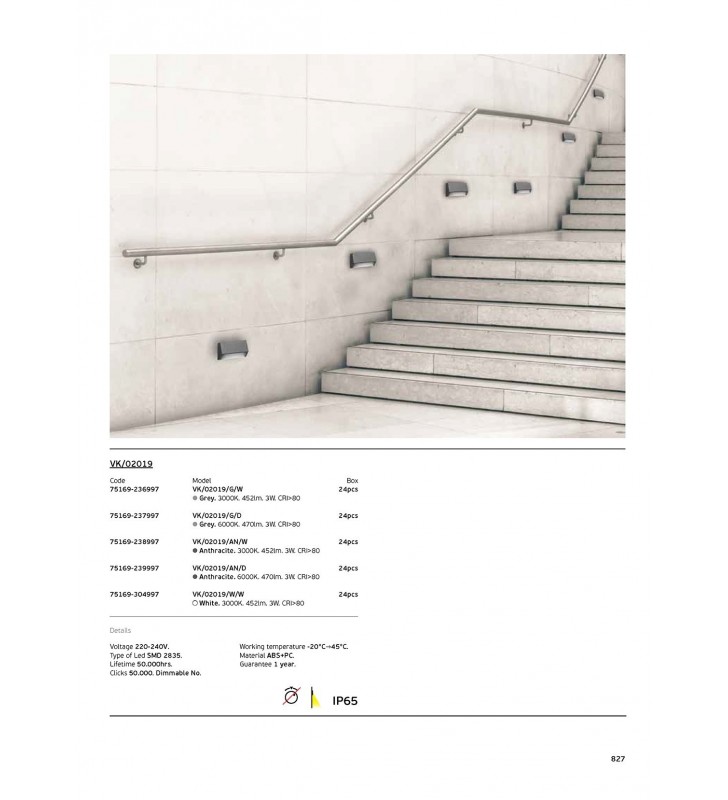 Φωτιστικό Led τοίχου, 220-240V, 3W, 6000K, 470lm, IP65, 22x8x3.6cm, ανθρακί