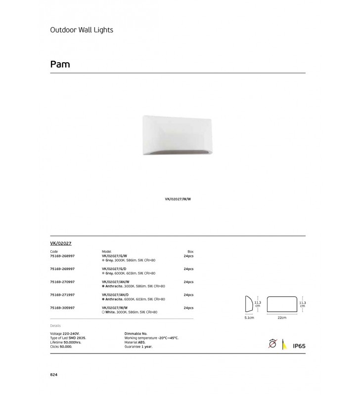 Φωτιστικό Led τοίχου, 220-240V, 5W, 6000K, 603lm, IP65, 22x11.3x5.1, γκρι