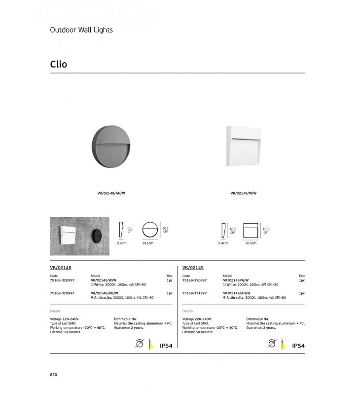 - Fitting: LED Outdoor Wall