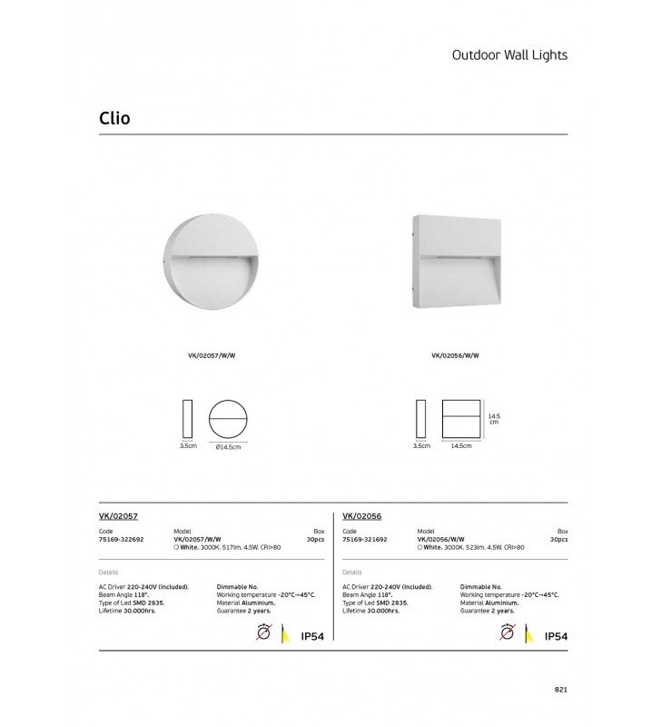 Φωτιστικό Led τοίχου τετράγωνο, 220-240V, 4.5W, 3000K, 523lm, IP54, 14.5x14.5x3.5cm, λευκό