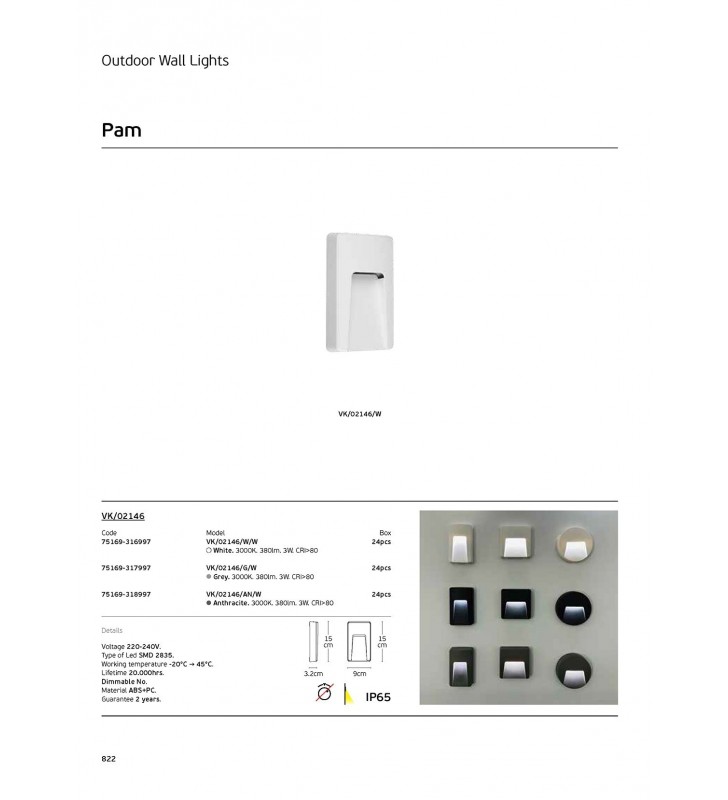 Φωτιστικό Led τοίχου ορθογώνιο, 220-240V, 3W, 3000K, 380lm, IP65, 9x15x3.2cm, γκρι
