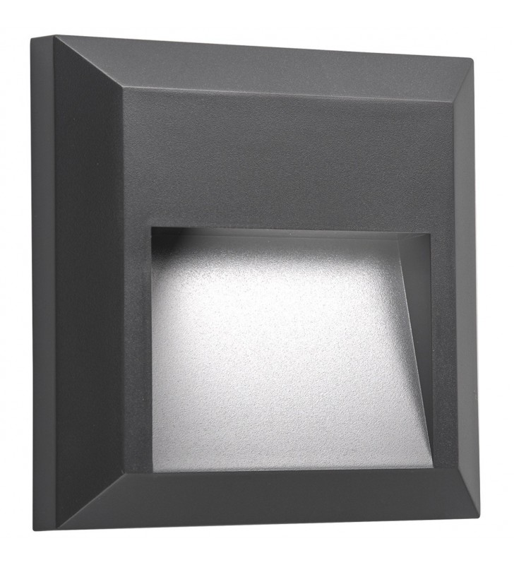 Φωτιστικό Led τοίχου τετράγωνο, 220-240V, 1W, 3000K, 144lm, IP65, 12.5x12.5x2.7cm, ανθρακί