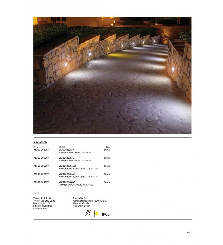 Φωτιστικό Led τοίχου, 220-240V, 3W, 3000K, 392lm, 120°, IP65, o15x2.7cm, λευκό