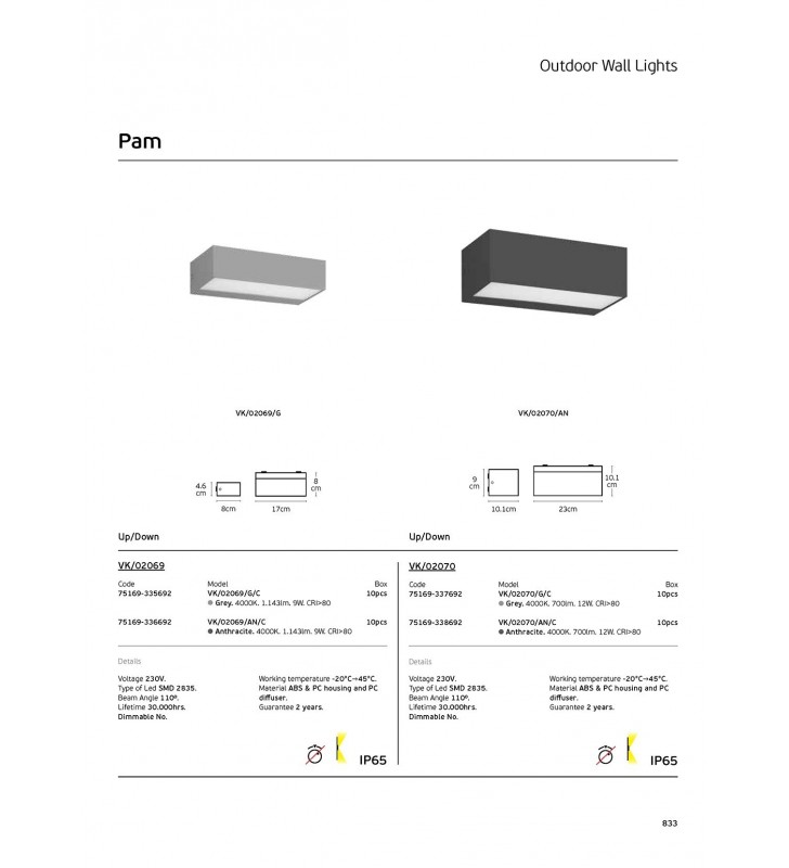 - Fitting: LED Outdoor Wall
