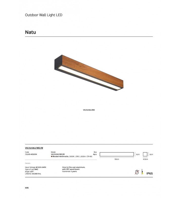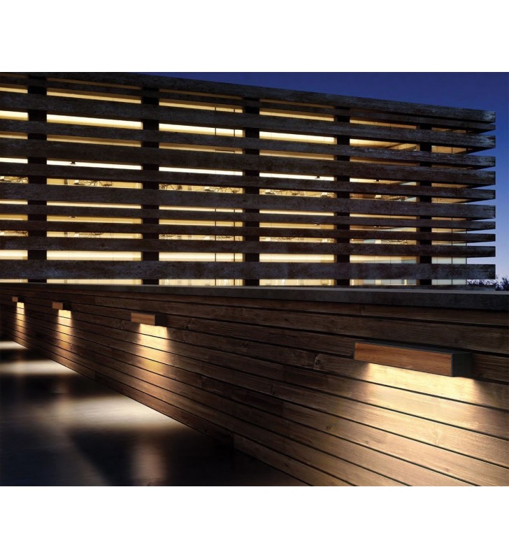 NATU Φωτιστικό τοίχου LED εξωτερικού χώρου, 220-240V, Ξύλο+ανθρακί. 3000K. 15W. 1.263lm. CRI>80. IP65, 50x6x6.5cm