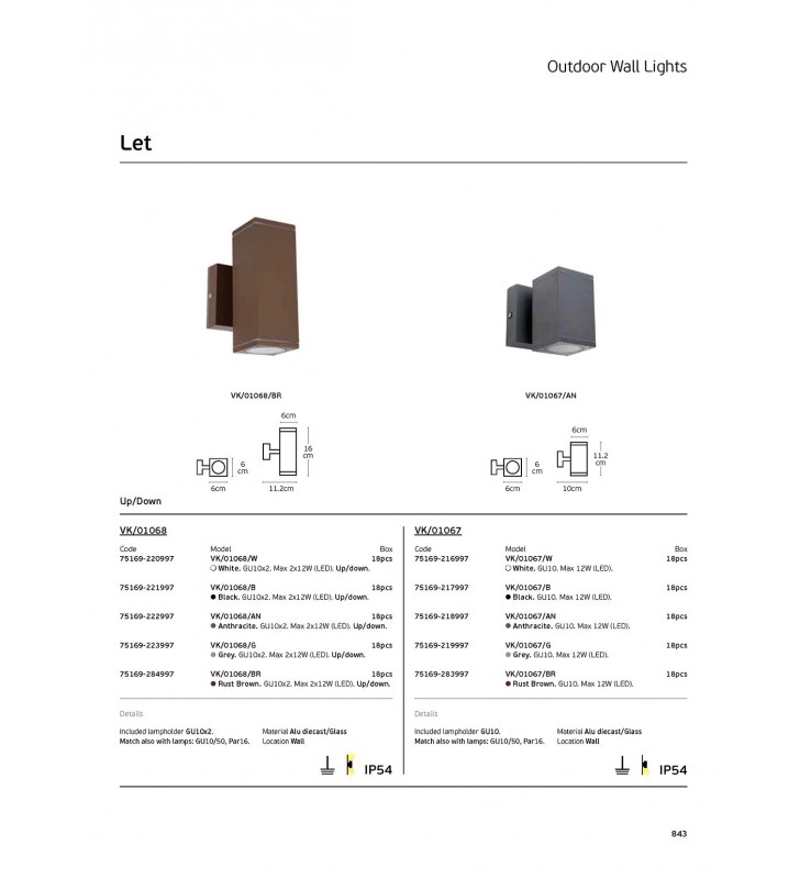Φωτιστικό τοίχου, Up/down. 240V, 2xGU10/PAR16, Max2x12W (LED), IP54, 6x6x16x11.2(depth)cm, γκρι