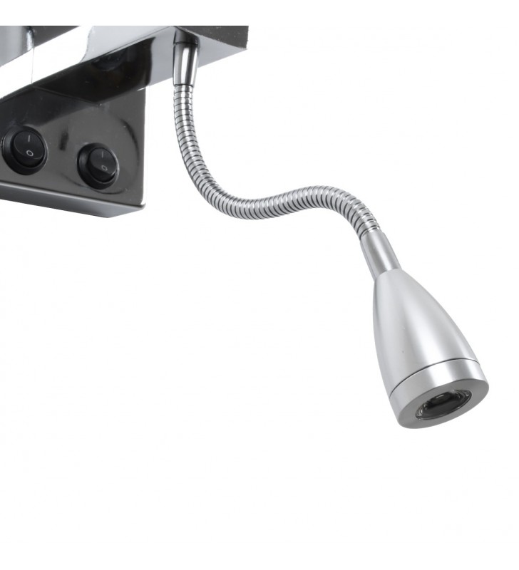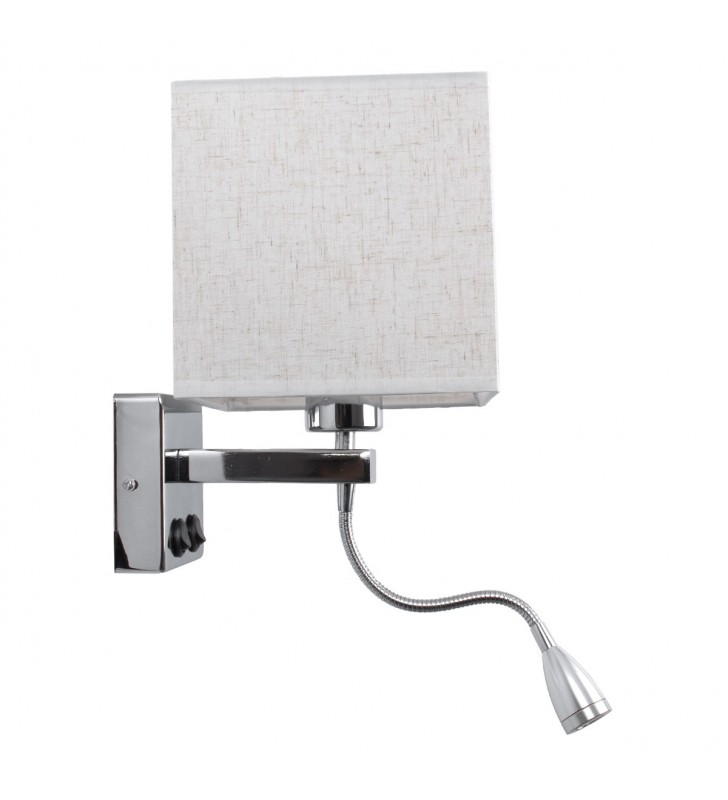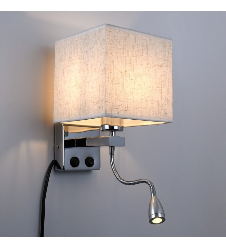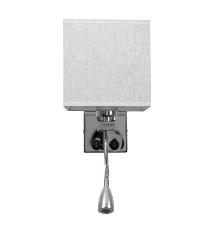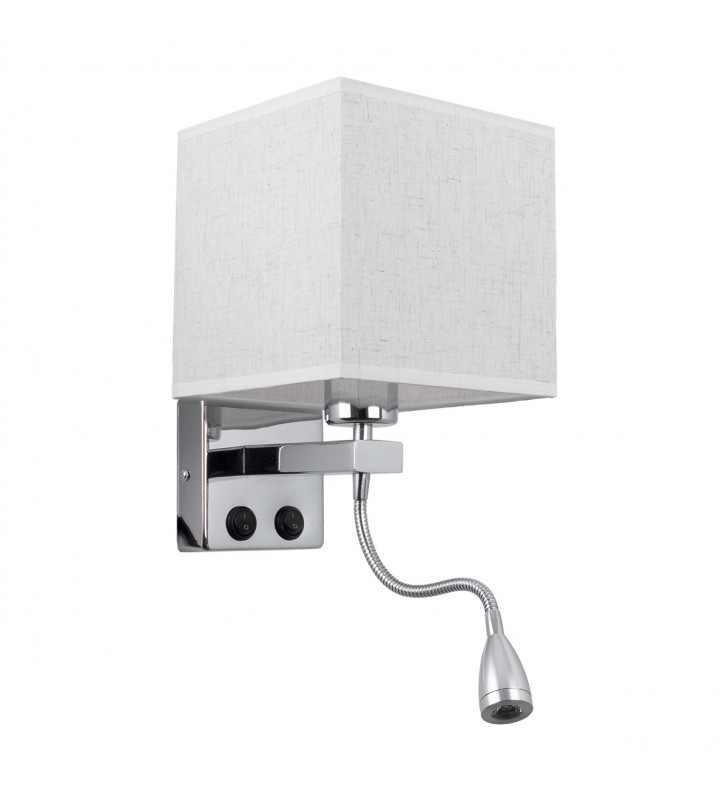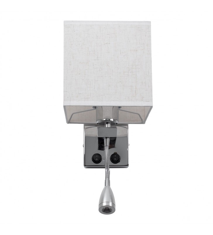 GloboStar® ELEGANT 01495 Μοντέρνο Φωτιστικό Τοίχου Απλίκα Μεταλλικό Χρώμιο Νίκελ με Λευκό Ύφασμα Δίφωτο 1xE27 - Ρυθμίζόμενο Σώμα Σπιράλ με CREE LED 3W Θερμό Λευκό 2700K - Διακόπτες On / Off Μ17 x Π21 x Υ43cm