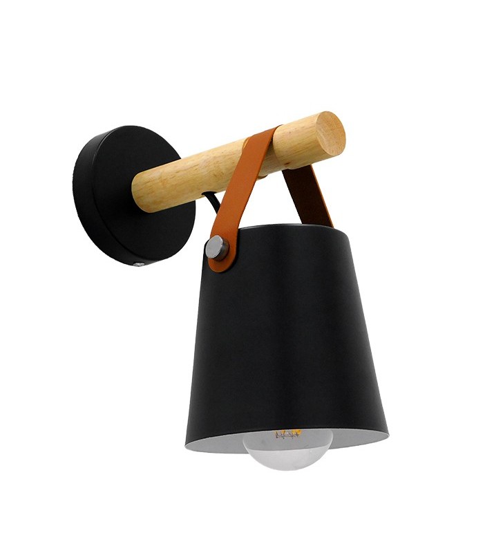 • Χρώμα Φωτιστικού: Μαύρο με Ξύλο και Δερμάτινο Λουράκι