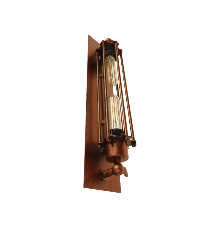 GloboStar BESPOKE 01565 Vintage Industrial Φωτιστικό Τοίχου Απλίκα Δίφωτο Χάλκινο Σκουριά Μεταλ.