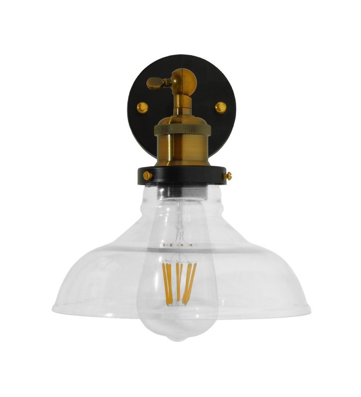 GloboStar LIVID 01159 Vintage Φωτιστικό Τοίχου Απλίκα Μπρούτζινο Μεταλ. με Γυάλινη Καμπάνα Φ15
