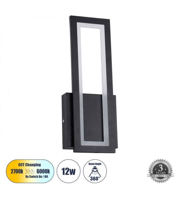 ΕΠΙΤΟΙΧΟ Φ/Σ LED 12W 3000K 960LM ΜΑΥΡΟ ΜΕΤ/ΚΟ 20X11X9CM MILANO - ACA (V80LEDW20BK)
