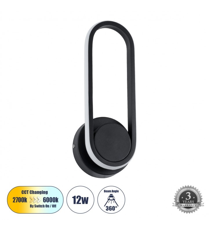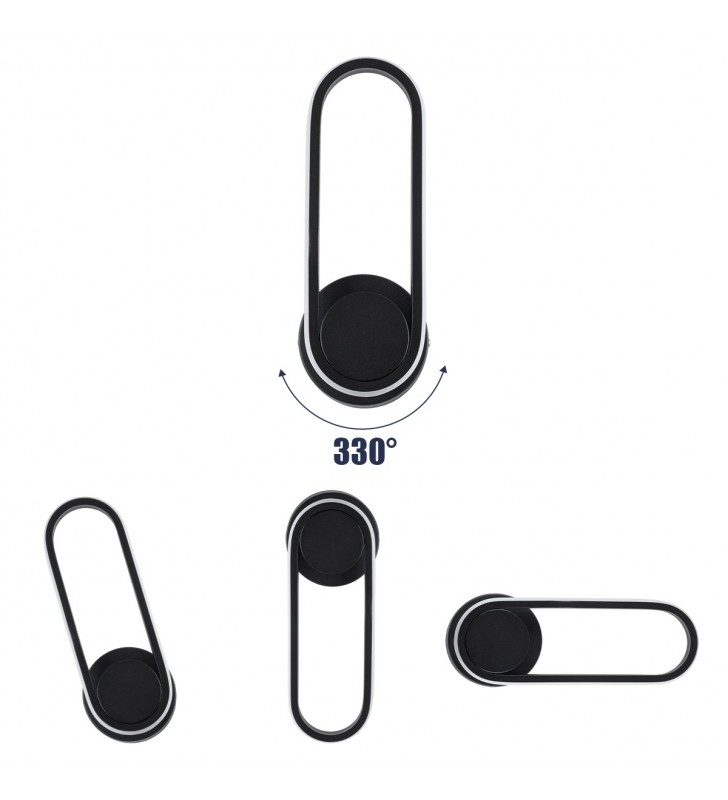 GloboStar ROULETTE-R 61379 Φωτ/κό Τοίχου, Απλίκα Ξενοδοχείου Bed Side LED 3W 4500K, Μαύρο, Σετ 2 Τμχ