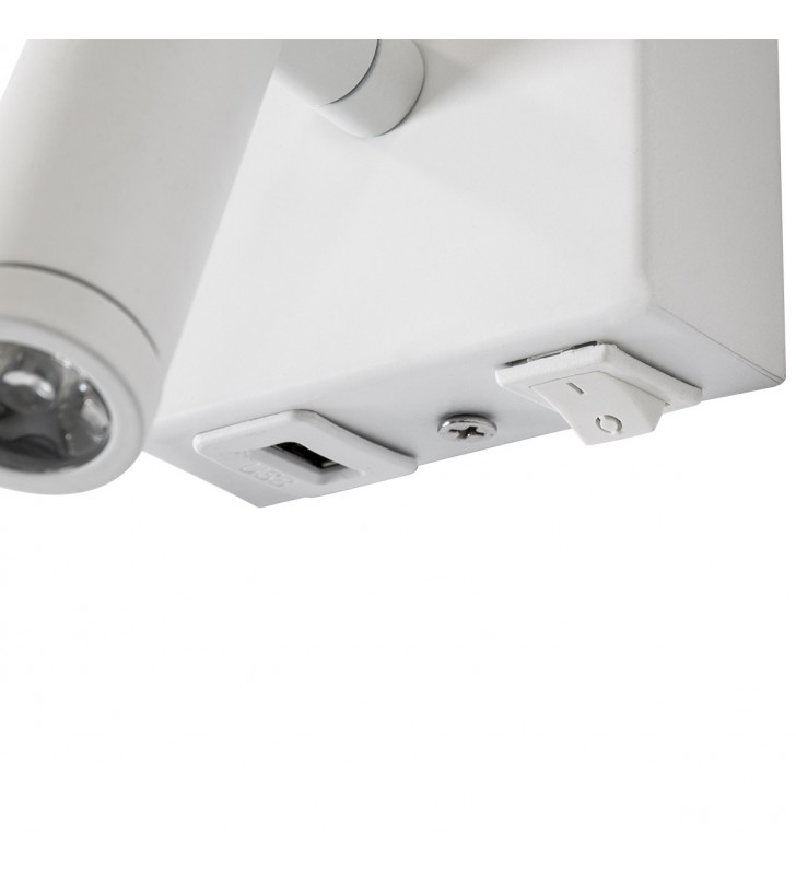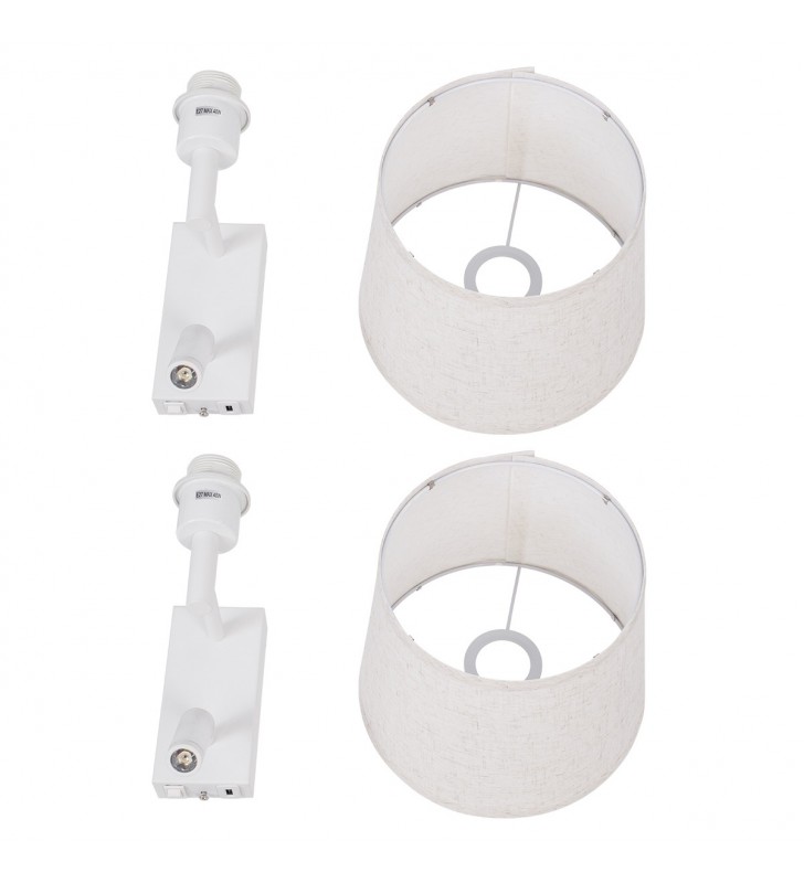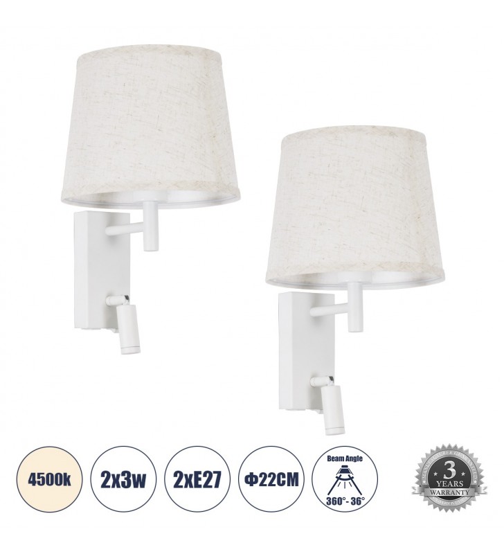 GloboStar® ROULETTE-R 61380 Μοντέρνο Φωτιστικό Τοίχου - Απλίκα Ξενοδοχείου Bed Side LED 3W 360lm & 1 x E27 36° & 360° AC 220-240V - Reading Up/Down Light - Φορτιστής USB 3A - Μ22 x Π23.5 x Υ37cm - Φυσικό Λευκό 4500K - Λευκό με Μπεζ Καπέλο - Σετ 2 Τεμαχίων