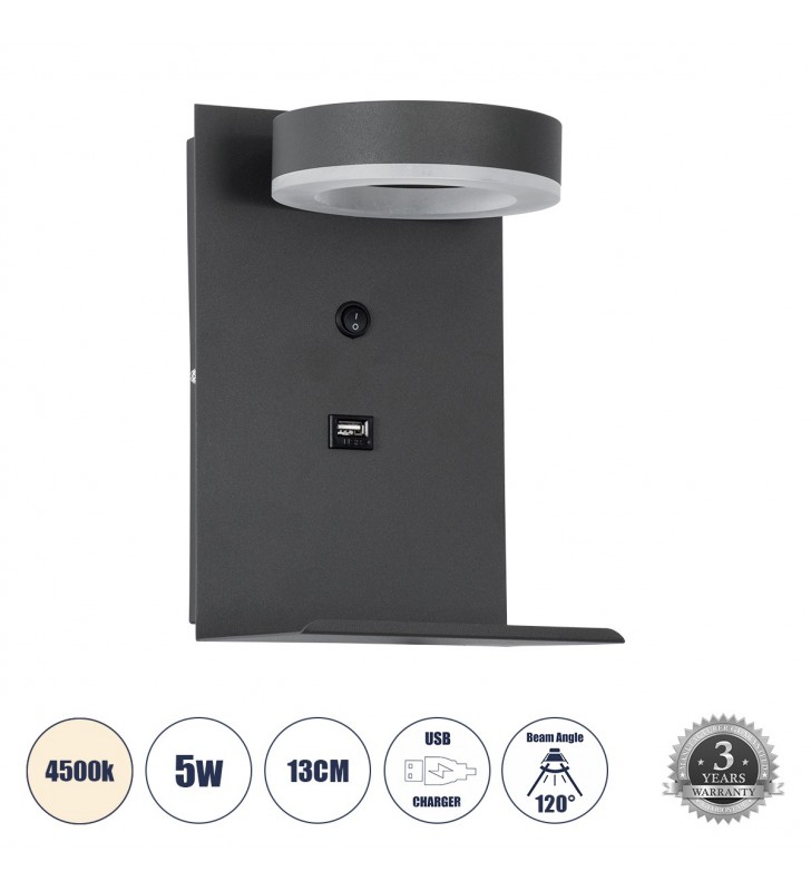 GloboStar PALADIN 61358 Φωτ/κό Τοίχου, Απλίκα Ξενοδοχείου Bed Side LED 6W, 4500K, Χρυσό Δεξί