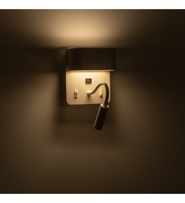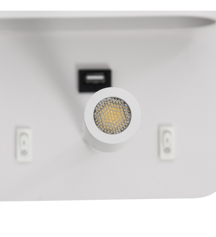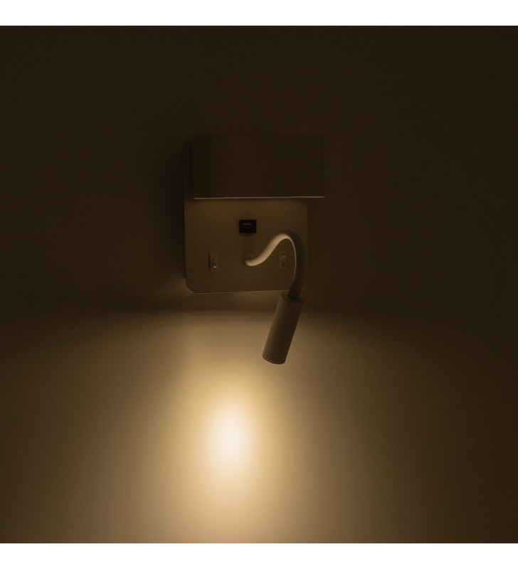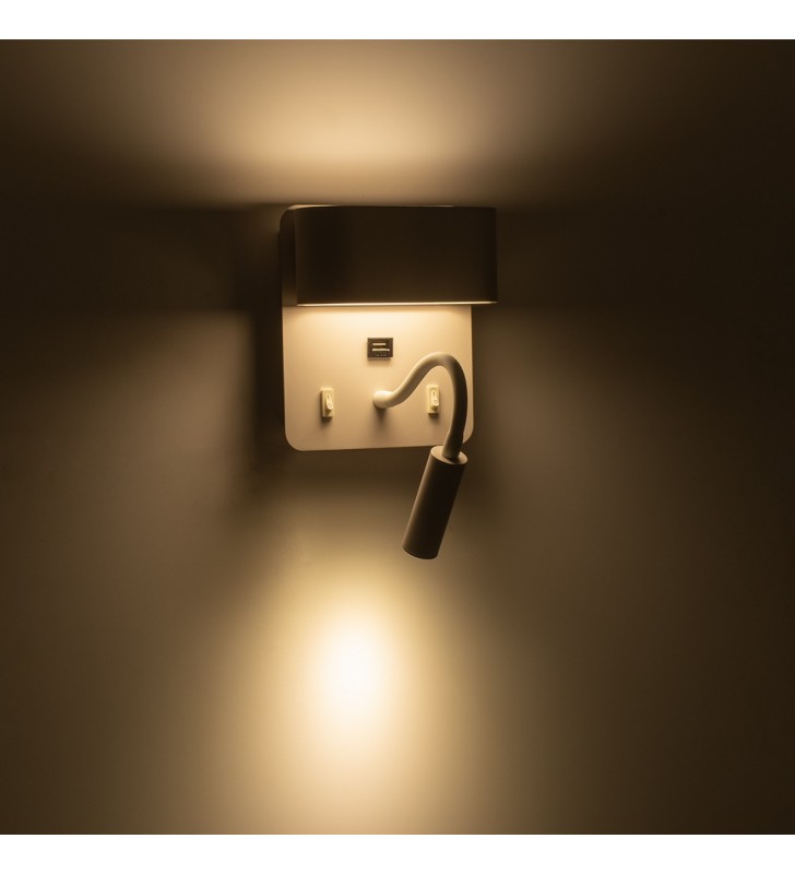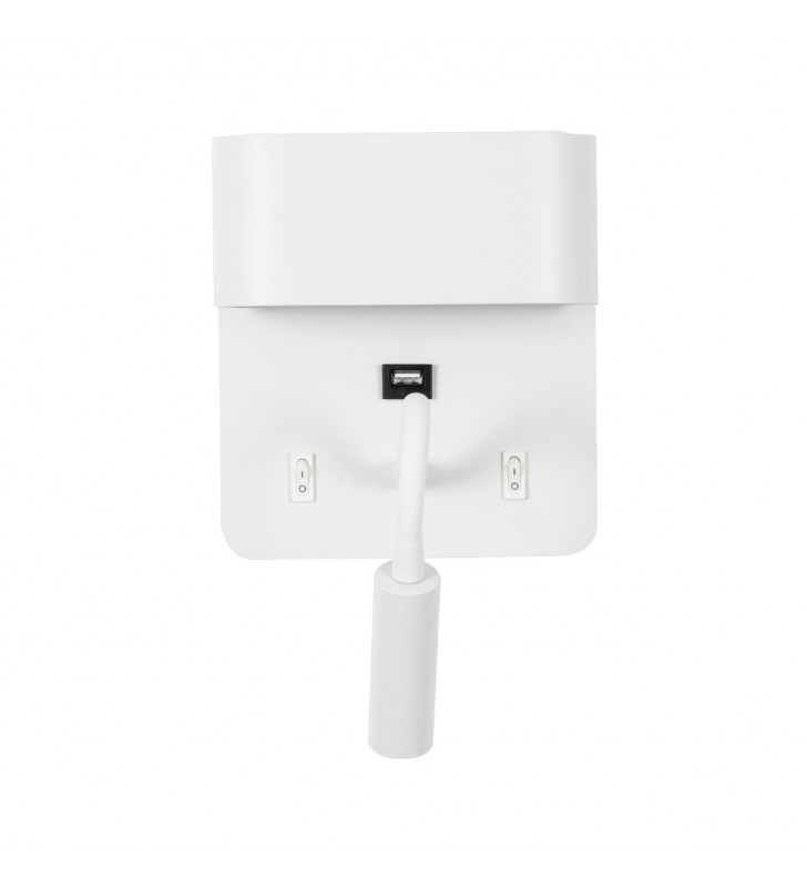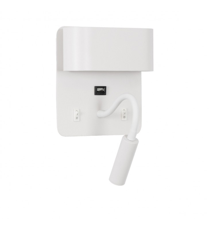 GloboStar® IBIS 61368 Μοντέρνο Φωτιστικό Τοίχου - Απλίκα Ξενοδοχείου Bed Side LED 10W 1100lm 36° & 360° AC 220-240V - Reading Light & Up/Down Light - Φορτιστής USB 3A - Μ10 x Π6.1 x Υ18cm - Φυσικό Λευκό 4500K - Λευκό