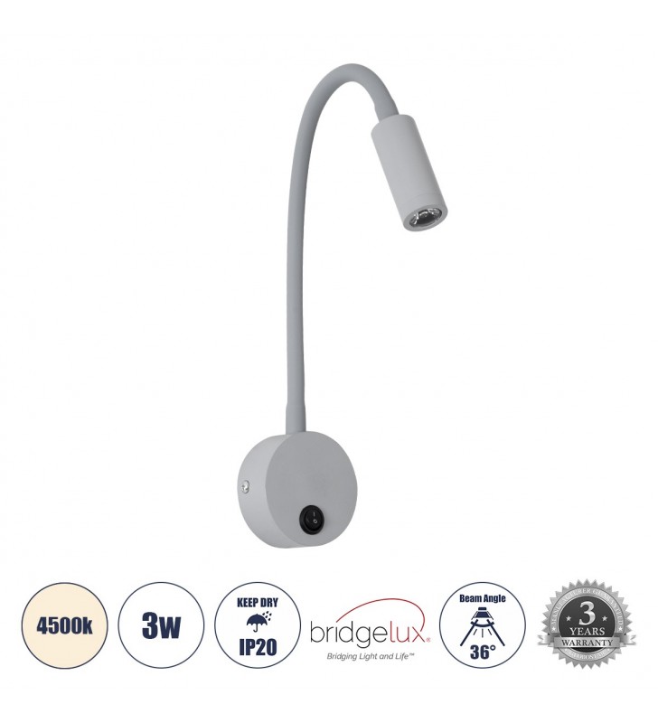 GloboStar GOOSE 60877 Φωτιστικό Τοίχου - Απλίκα Ξενοδοχείου Bed Side LED 3W - 4500K - Γκρι Ανθρακί