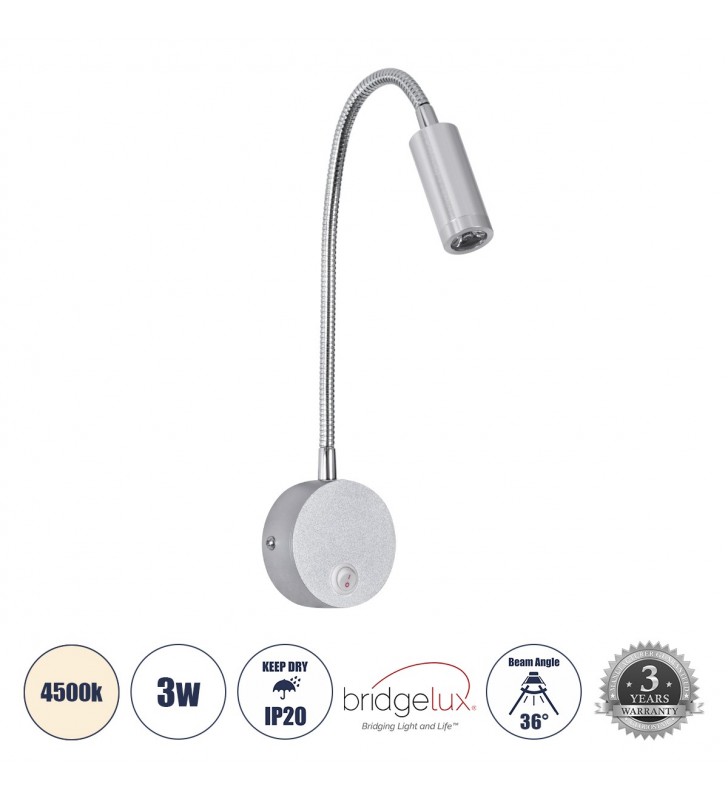 Απλίκα τοίχου led, 3W, 3200K, 205lm, 25°, USB, IP20, λευκή - Vk (VK/04232/W/W)