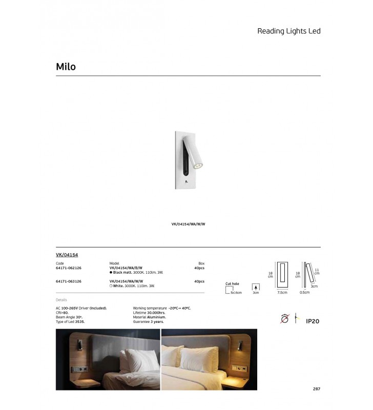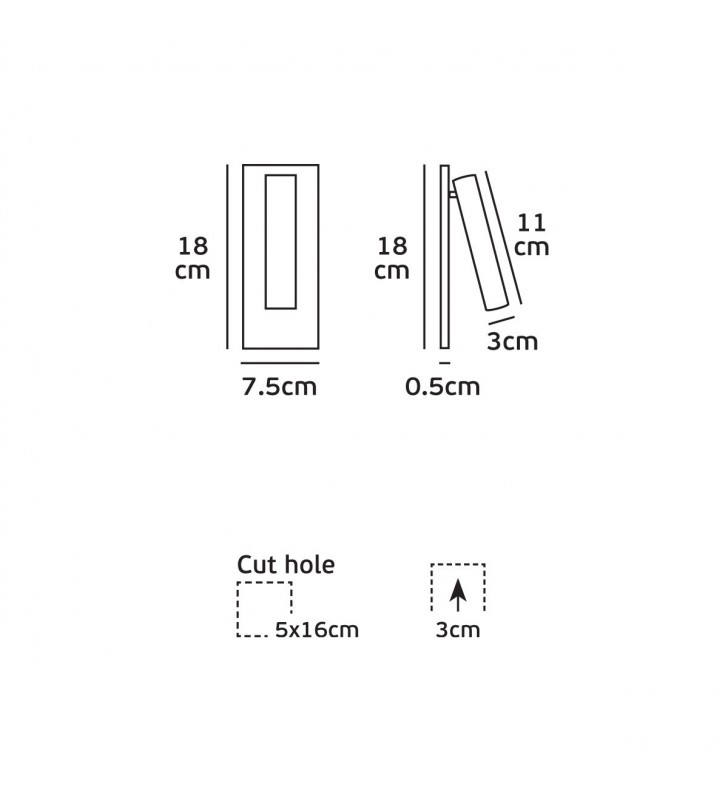 Απλίκα τοίχου led, 100-265V, 3W, 3000K, 110lm, 30°, CRI>80, IP20, μαύρη