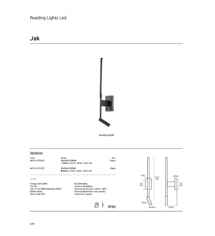 Φωτιστικό τοίχου led, 220-240V, 3W & 6W, 3200K, 480lm, 25°, CRI>70, IP20, μαύρο