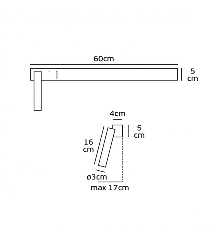 Φωτιστικό τοίχου led, 220-240V, 3W & 12W, 3200K, 690lm, 25°, CRI>70, IP20, 60cm, λευκό αριστερό