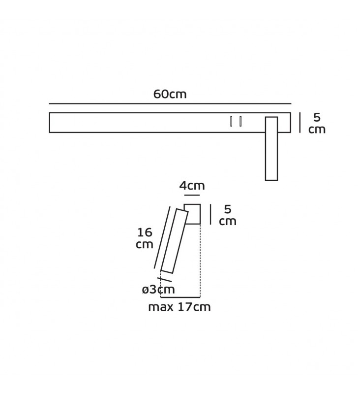 Φωτιστικό τοίχου led, 220-240V, 3W & 12W, 3200K, 690lm, 25°, CRI>70, IP20, 60cm, μαύρο δεξί