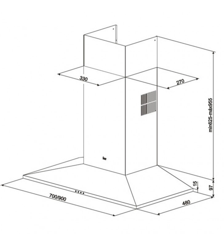 Απορροφητική ικανότητα: Εντατική ταχύτητα: 760 m3/h (*), Μέγιστη ταχύτητα: 597 m3/h (*), Ελάχιστη ταχύτητα: 303 m3/h (*), Ενεργειακή Κλάση: A+, (*) σύμφωνα με ΕΕ 65/2014 . Εξωτερικές διαστάσεις: Ύψος (mm) : 700-1100, Πλάτος (mm): 700, Βάθος (mm): 480, Βαρος (Κgs): 13,5. Ιδιαίτερα χαρακτηριστικά: