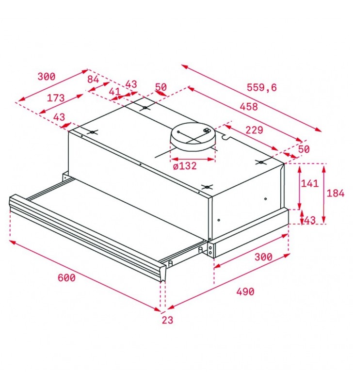 Εσωτερικές διαστάσεις: Εσωτερικό ύψος (mm): 184Εξωτερικές διαστάσεις Ύψος (mm) : 184 Πλάτος (mm): 600 Βάθος (mm): 300/490 Βάρος (Κgs): 7,26 Ιδιαίτερα χαρακτηριστικά: Πιστοποιητικά: CE; CB; Rohs Διάμετρος εξόδου O (mm): 120 Κατανάλωση εσωτερικού φωτισμού(W): 1 9 Πρίζα: European plug Ισχύς (V): 230 Συχνότητα (Hz): 50 Συνολική ισχύς περιέχουνητηρα (W): 119 Ισχύς μοτέρ, (W): 110