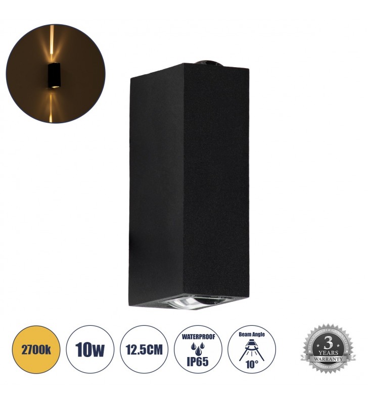 GloboStar LINOR 60529 Απλίκα Αρχιτεκτονικού Φωτισμού Up & Down LED 10W 60° 2700K - Μαύρο
