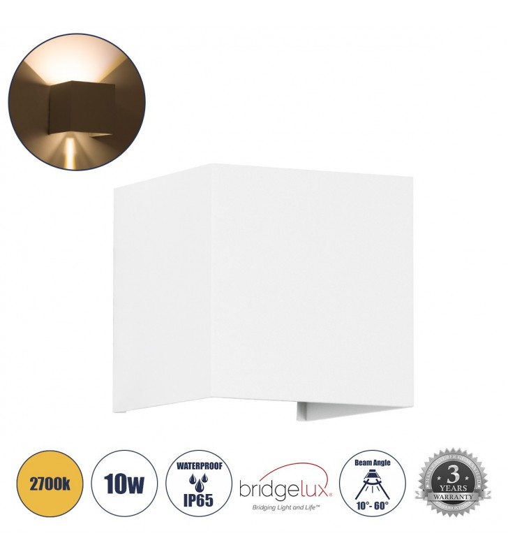 GloboStar® AXIS-S 60560 Φωτιστικό Τοίχου - Απλίκα Αρχιτεκτονικού Φωτισμού Εσωτερικού/Εξωτερικού Χώρου Up & Down LED 10W 1150lm 10 έως 60° AC 220-240V Αδιάβροχο IP65 Μ10 x Π10 x Υ10cm - Θερμό Λευκό 2700K - Λευκό - Bridgelux Chip - 3 Years Warranty