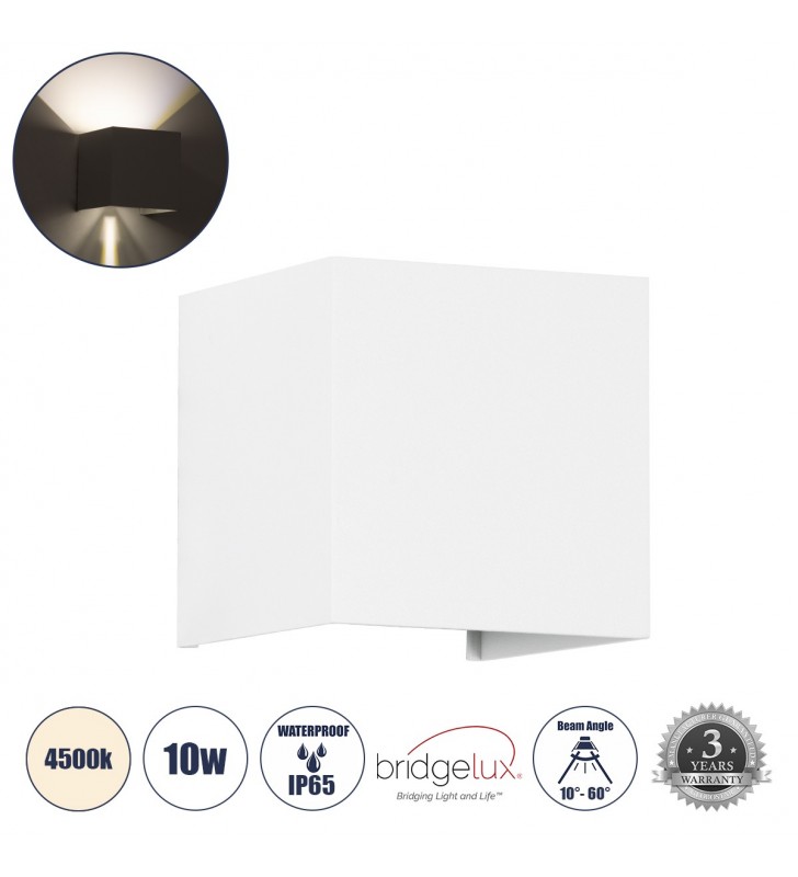 GloboStar® AXIS-S 60563 Φωτιστικό Τοίχου - Απλίκα Αρχιτεκτονικού Φωτισμού Εσωτερικού/Εξωτερικού Χώρου Up & Down LED 10W 1200lm 10 έως 60° AC 220-240V Αδιάβροχο IP65 Μ10 x Π10 x Υ10cm - Φυσικό Λευκό 4500K - Λευκό - Bridgelux Chip - 3 Years Warranty