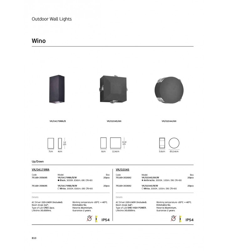 Φωτιστικό Led τοίχου, 220-240V, 5W, 3000K, 100lm, 4x6°, IP54, 12.4x12.4x6cm, ανθρακί