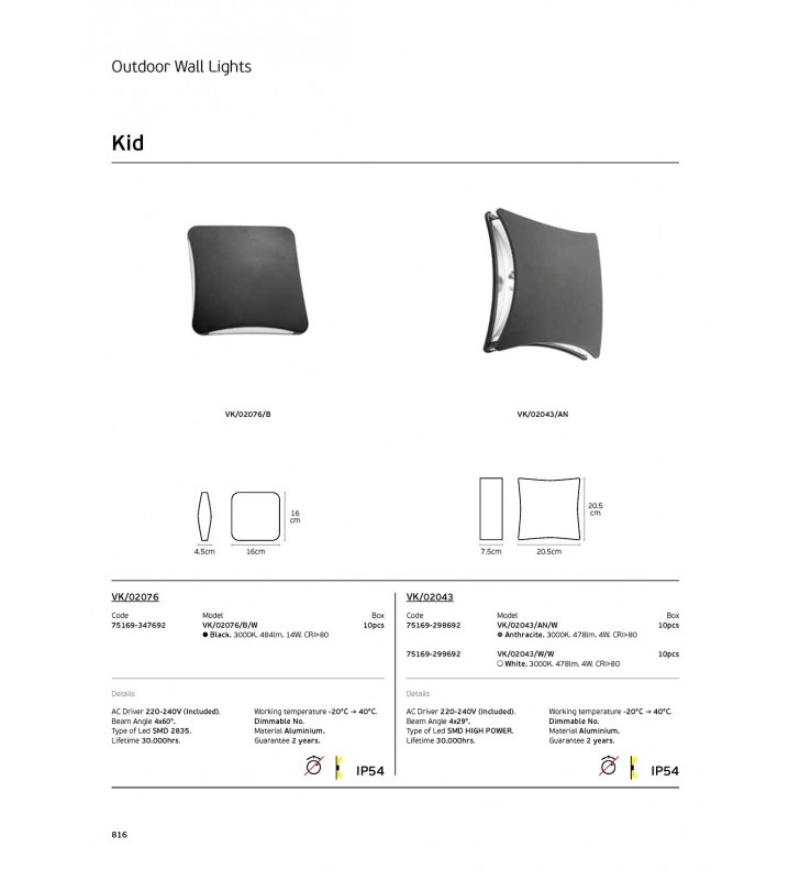 Φωτιστικό Led τοίχου, 220-240V, 4W, 3000K, 478lm, 4x29°, IP54, 20.5x20.5x7.5cm, ανθρακί
