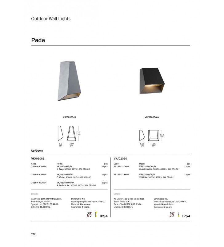 Φωτιστικό Led τοίχου, Up/down, 100-240V, 8W, 3000K, 187lm, IP54, 10.9x17.3x6.3cm, ανθρακί