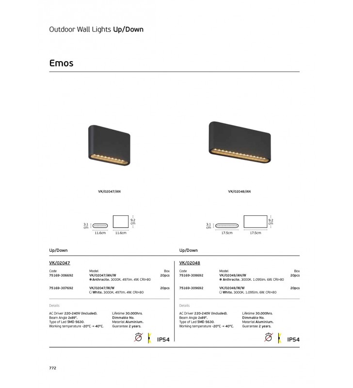 - Fitting: LED Outdoor Wall