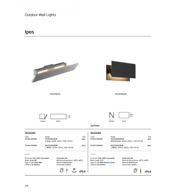 Φωτιστικό Led τοίχου, 100-240V, 20W, 3000K, 396lm, IP54, 50x10x13.8cm, γκρι