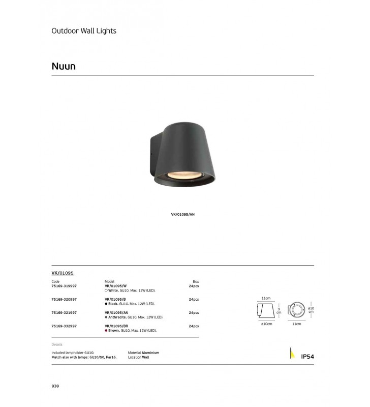 Φωτιστικό τοίχου, 220-240V, GU10/PAR16, Max. 12W (LED), IP54, o10x9x11cm, ανθρακί