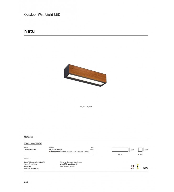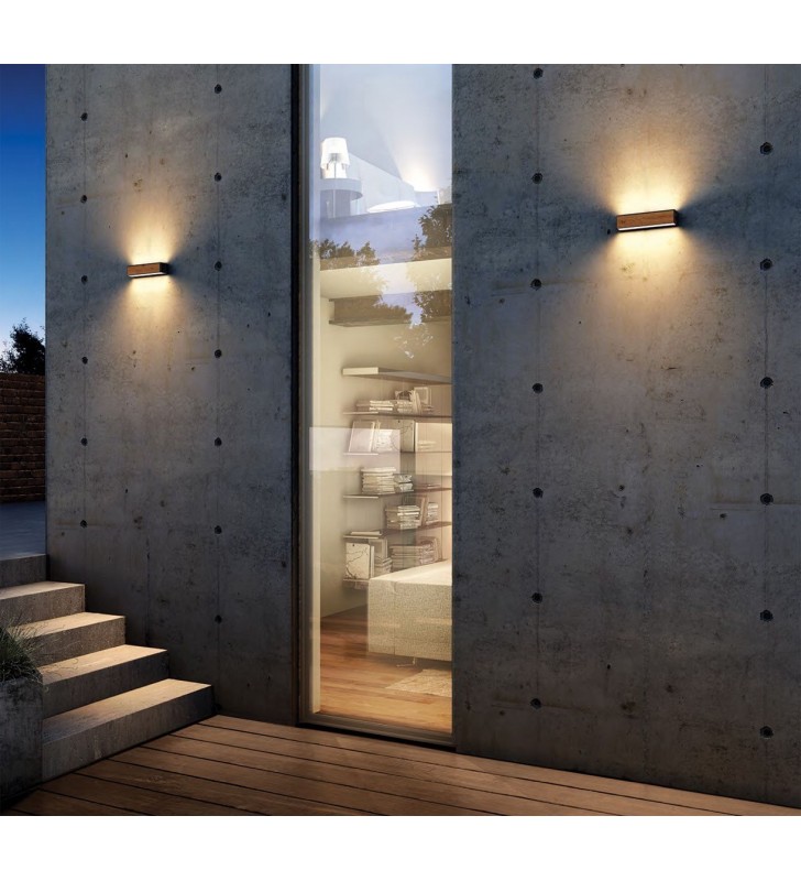 NATU Φωτιστικό τοίχου LED εξωτερικού χώρου, Up/down, 220-240V, Ξύλο+ανθρακί. 3000K. 15W. 1.180lm. IP65, 25x6x6.5cm