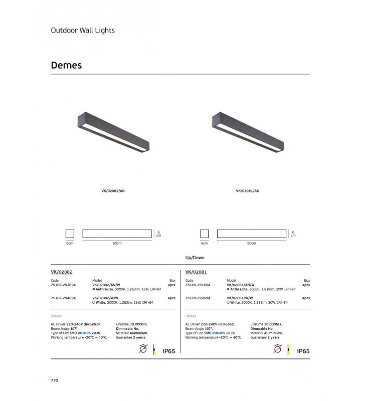 Φωτιστικό Led τοίχου, 220-240V, 15W, 3000K, 1263lm, IP65, 50x6x6cm, λευκό