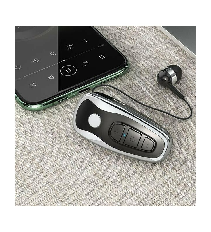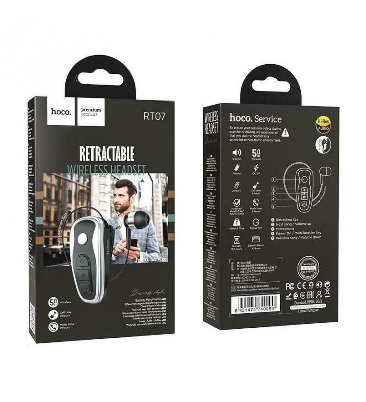 Bluetooth Hands Free Hoco RT07. Έκδοση Bluetooth BK3266 5.0, εμβέλεια έως 10m, καθαρό - συνεχή ήχο και σταθερό σήμα. Με πλήκτρα ελέγχου που σας επιτρέπουν να απαντάτε/τερματίσετε μια κλήση ή να αυξομειώσετε την ένταση της. Διαθέτει εύρος κάλυψης 10 μέτρων από την συσκευή σας ώστε να μπορείτε να το χρησιμοποιείτε οπουδήποτε ακόμα και σε απόσταση. Με μεγάλη μπαταρία 110 mΑh σας παρέχει χρόνο ομιλίας/αναπαραγωγής για έως 9 ώρες, χρόνο αναμονής έως και 150 ώρες ενώ χρειάζεται 2 ώρες για μια πλήρη φόρτιση της μπαταρίας του. Μικρό, συμπαγές και ελαφρύ (20γρ 59*26*24mm) Bluetooth σχεδιασμένο να παρέχει υψηλής ποιότητας ήχο και άνετη εφαρμογή. Διαθέτει καλώδιο 35εκ. και έυχρηστο κλιπ που εφαρμόζει σε κάθε τύπου ρούχο για να το έχετε πάντα επάνω σας χωρίς να σας ενοχλεί κάνοντας το ένα αναπόσπαστο εργαλείο της καθημερινότητας σας. Εξοπλισμένο με δυνατή δόνηση θα σας ειδοποιήσει για κάθε κλήση, όπως και για την περίπτωση αποσύνδεσης από την συσκευή σας. Συμβατό και με Android και με iOS.