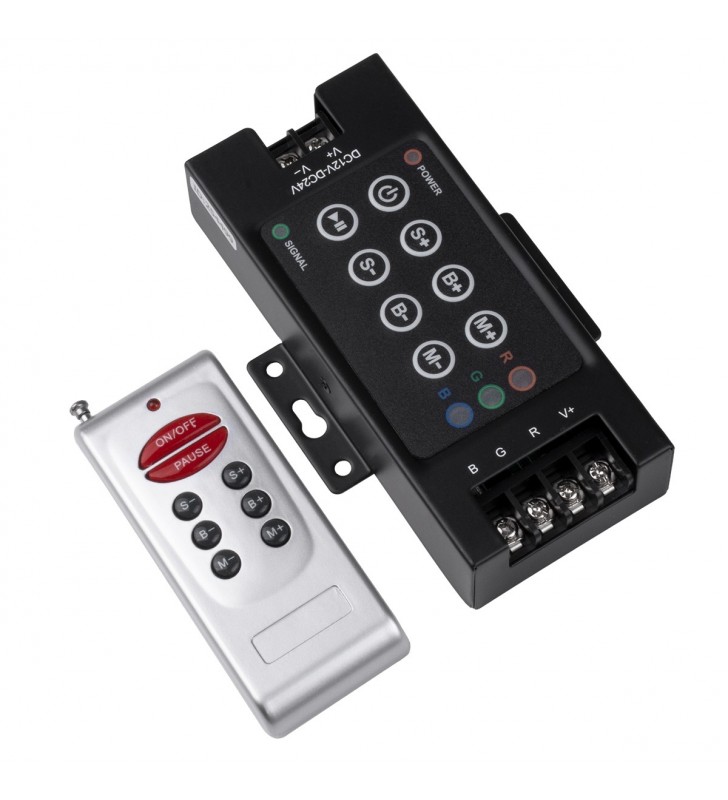 Ασύρματος LED RGB Controller με Χειριστήριο RF 12v (360w) - 24v (720w) DC GloboStar 73405 κατάλληλος για όλα τα προϊόντα LED RGB τροφοδοσίας 12 ή 24 Volt DC με μέγιστο φορτίο στα 12 Volt 360 Watt και στα 24 Volt 720 Watt.
