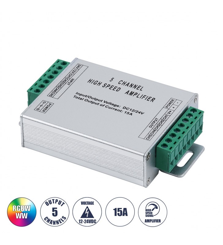 GloboStar 73395 High Speed LED Amplifier - Ενισχυτής Σήματος Υψηλών Ταχυτήτων LED 5 Καναλιών 12-24V